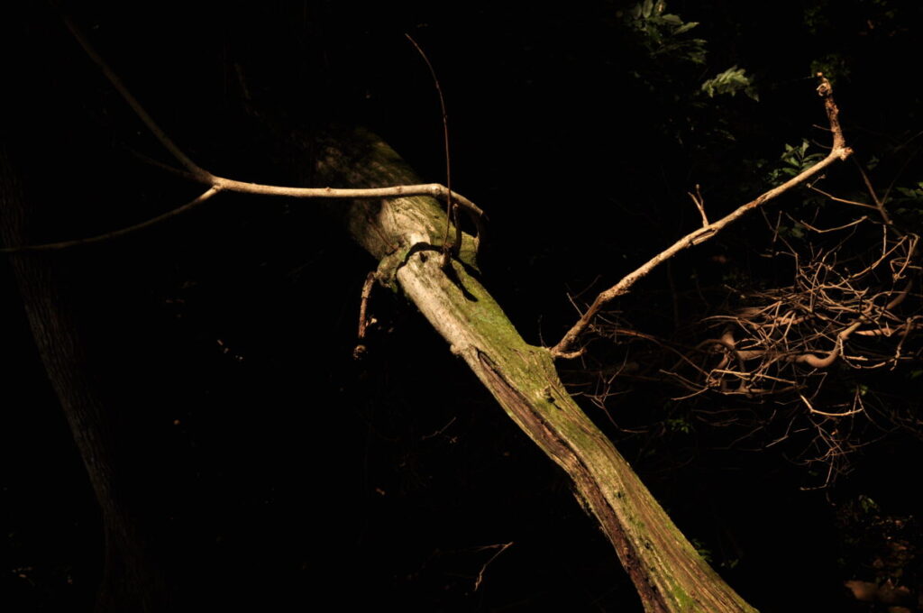 春日山原始林。千年以上前に狩猟と伐採が禁止された春日大社の聖域。鬱蒼と繁茂した巨木の中に突然現れたまだ生命が宿る枯れかけた木。背後からも応援されています。露出補正を強めにかけ撮影しました。